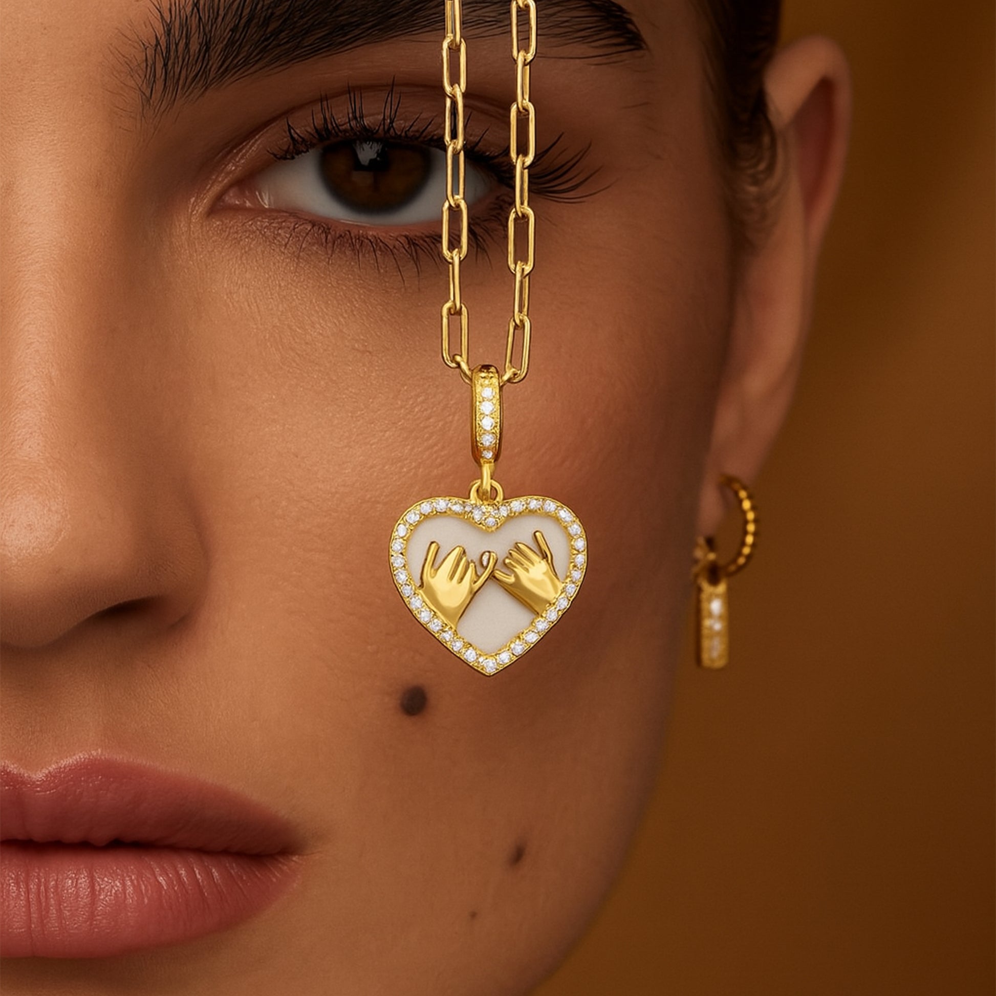 💗 Pinkie Promise features a gleaming heart frame with two hands mid-gesture — a tender reminder of the bonds that words can't always express.